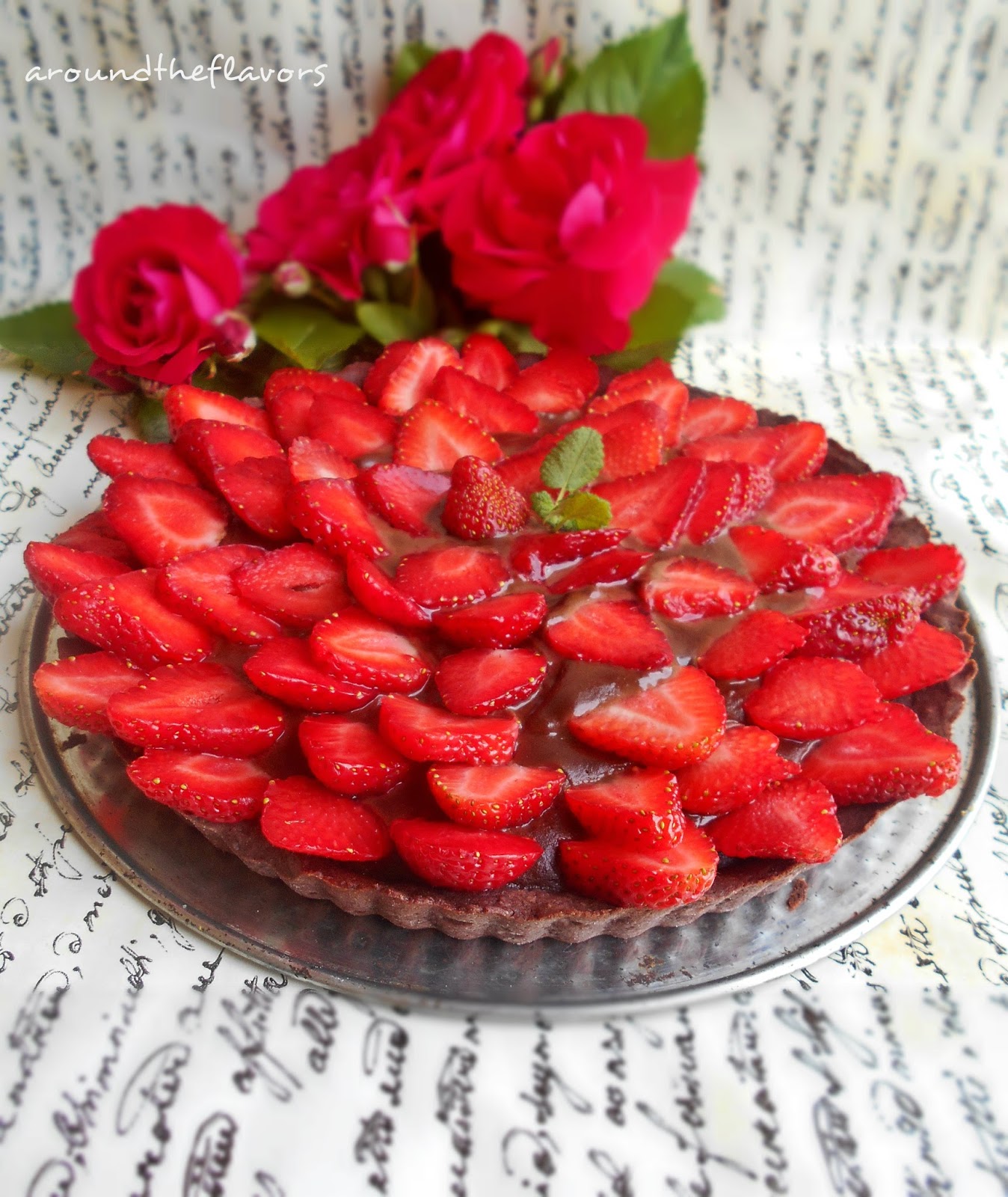 160 g mąki pszennej posiekaj z masłem.Dodaj kakao,sól,cukier puder i jajko.Zagnieć ciasto,owiń w folię spożywczą i wstaw do lodówki na ok 30 minut.Po tym czasie ciasto rozwałkuj i wyłóż na wysmarowaną masłem formę.