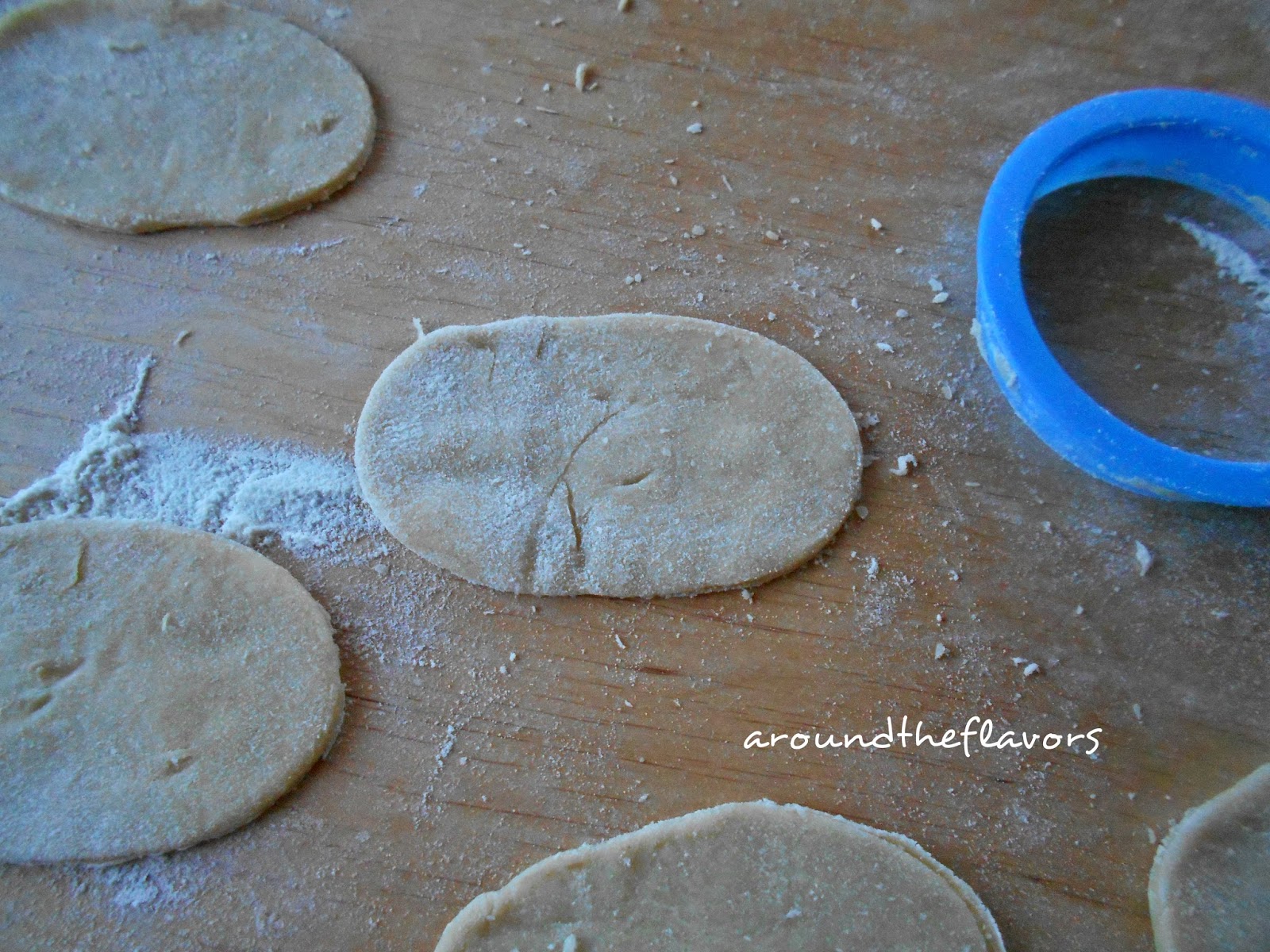 Następnego dnia ciasto wyjmij z lodówki i odstaw aby się zagrzało,ok. 1 godzinę. Następnie każdą kulkę rozwałkuj na stolnicy. Okrągłą foremką wycinaj kółka,a następnie nadaj im lekko owalny kształt. Na każdy kawałek ciasta wyłóż ok. 1 łyżeczkę dżemu,rozsmaruj i zawiń w rulon.