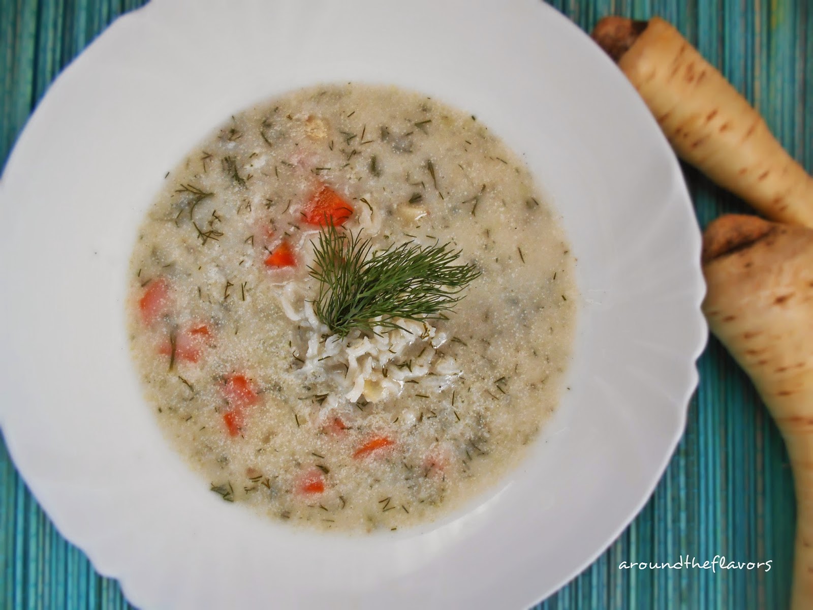 Koperek posiekaj i dodaj do zupy. Śmietanę przełóż do miseczki,dodaj łyżkę zupy.Wymieszaj i wlej do garnka z zupą.
