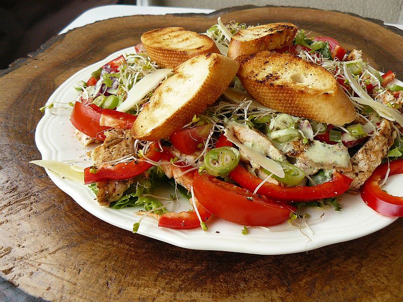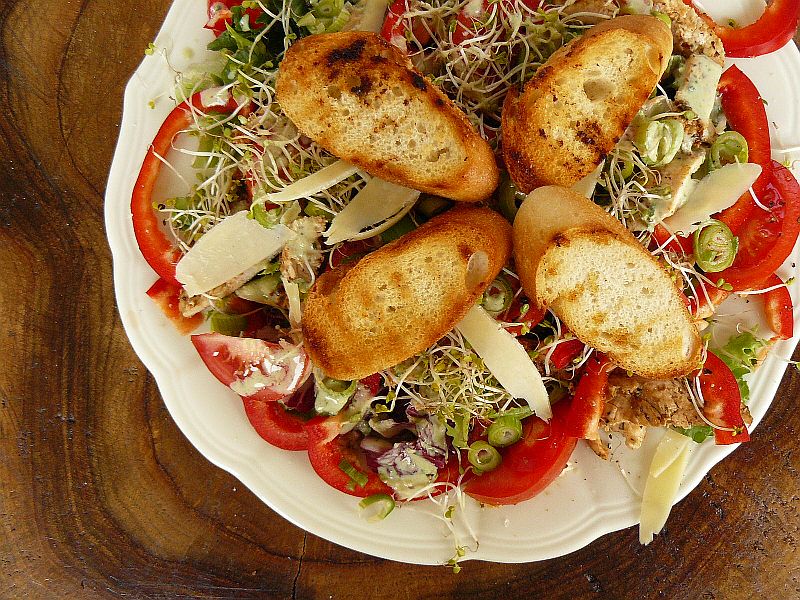 Sałatka cesarska, czyli nieco zmieniona sałatka Cezar. Jest grillowany kurczak, jest pieczywo, ale dodatki trochę mniej oczywiste. Sami zobaczcie.