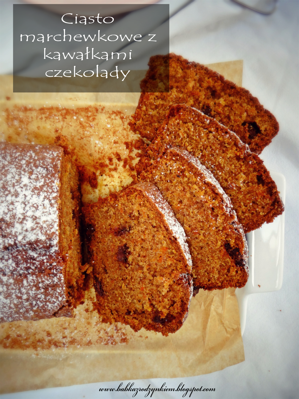Ostatnio na większości blogów kulinarnych (na moim także ;-))królowały pączki, faworki i inne tego typu smażone przysmaki... Po tych karnawałowych szaleństwach nabrałam ochoty na bardzo aromatyczne i wilgotne ciasto marchewkowe z piernikową nutą i kawałkami czekolady...Skorzystałam z przepisu Elizy Mórawskiej który znalazłam w jej książce "White Plate-słodkie".