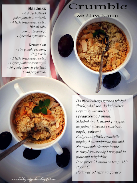 Śliwki zapieczone pod chrupiącą kruszonką... Prosty deser który z powodzeniem osłodzi nam ponure, jesienne i zimowe wieczory...