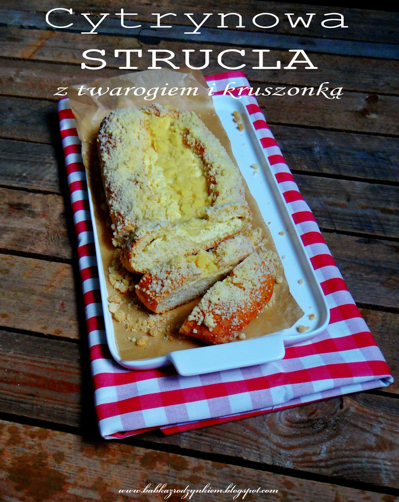 Świeża, cytrynowa i bardzo wiosenna drożdżowa strucla z twarogiem i kruszonką-przepyszna!Przepis na nią pochodzi z książki: "Moje wypieki i desery" Doroty Świątkowskiej.