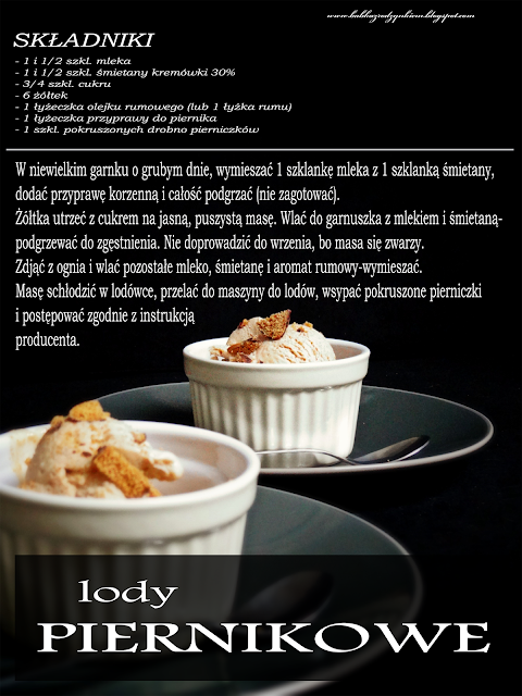 Jeśli gdzieś, w czeluściach kuchennej szafki, zawieruszyła się Wam ostatnia paczka poświątecznych pierniczków, to zachęcam do tego żeby zrobić z nich...lody :-)
