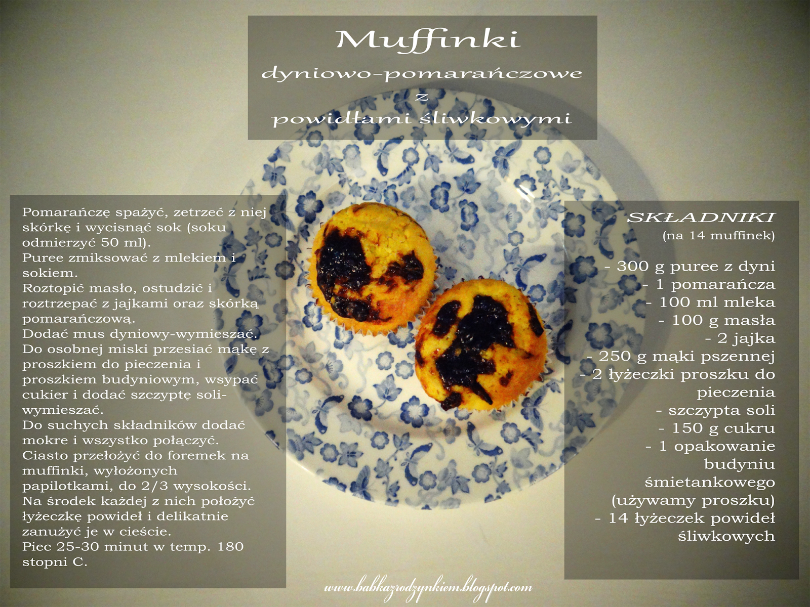 Obiecałam, że na blogu będzie dyniowo...więc jest dyniowo :-)Dziś mam dla Was przepis na muffinki w których dynia występuje w towarzystwie pomarańczy i powideł śliwkowych... Jest pysznie i baaardzo aromatycznie-ZAPRASZAM!