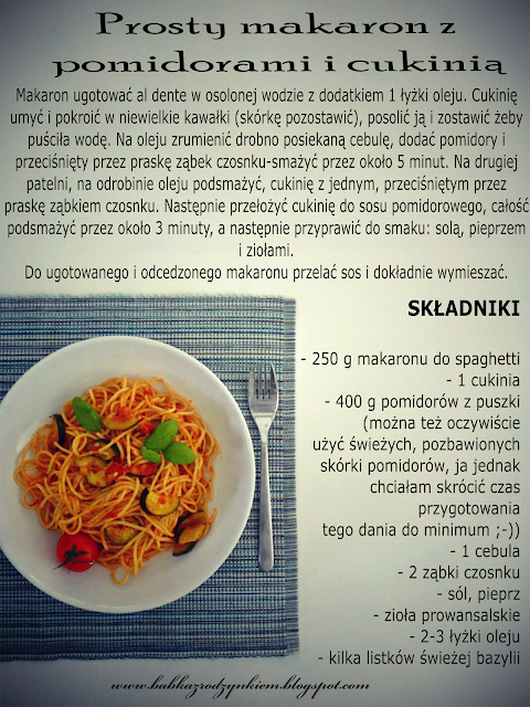 Uwielbiam lato... za słońce, za ciepło i za jego bogactwo owoców i warzyw:-)Bo tylko teraz w kilka chwil, z zaledwie paru składników można przygotować szybki i pyszny obiad... O choćby taki sos do makaronu z pomidorów, cukinii, czosnku i cebuli. Prosty? Prosty! Można? Można!Bo kiedy jak nie właśnie teraz...LATEM!