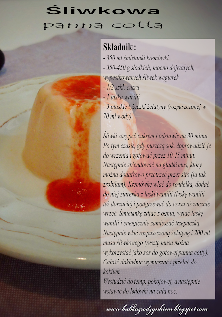 Mój sposób na przygotowanie żelatyny do deserów znajdziecie w tym wpisie. Przepis na panna cottę śliwkową pochodzi z tego bloga.