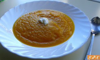 po tygodniu z chorobami czas nadrobić zaległości. Poprosiłam wczoraj Męża żeby kupił małą dynię, bo mam ochotę na krem. No to kupił. 2,7 kg!! Więc jakby ktoś miał ochotę na krem z dyni, to zapraszam- mam ponad 5 litrów w lodówce :-P a poniżej załączam przepis na prosty i aksamitny krem z dyni. Oczywiście zmniejszcie proporcje wg potrzeby ;-)