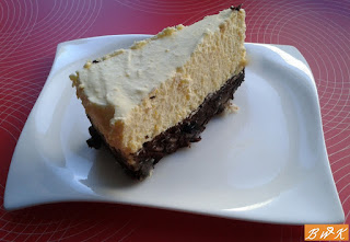 Pozostałą ilość śmietanki ubij na sztywno. Dodaj masę czekoladową. Wylej na ostudzone ciasto. Przed podaniem schłodź całą noc w lodówce.
