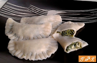 nie ma nic lepszego na spożytkowanie niezliczonych pokładów energii jak... lepienie pierogów. To jest mój sposób na odreagowanie, oderwanie się od spraw codziennych. Jedni walą w worek bokserski, drudzy biegają, a ja.. właśnie tak! LEPIĘ PIEROGI. Moje potrawy zawsze są smaczne, ale z tym farszem to ja już przeszłam sama siebie!!!! :-P Szpinak, twaróg, doprawione chilli, otulone cienkim i delikatny ciastem pierogowym. Czego chcieć więcej?! No oczywiście- większej ilości pierogów! :-)