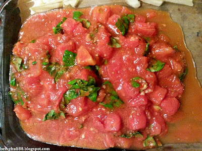 1. Pomidory przekładamy do miski (można się z nich pozbyć nadmiaru soku, ale nie jest to konieczne).