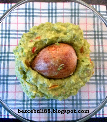 4. Aby gotowe guacamole nam nie ściemniało na środek sosu wciskamy pestkę z awokado.