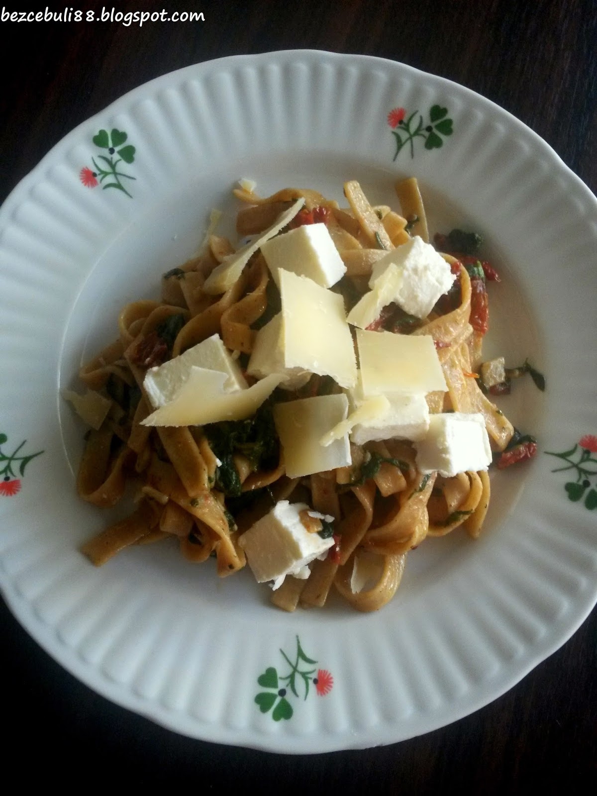 Dziś zapraszam na makaron ze szpinakiem i suszonymi pomidorami. Spotkałam się z takim połączeniem w restauracji i postanowiłam odtworzyć je w domu. Muszę przyznać, że idealnie trafia w moje kubki smakowe! Smacznie i szybko zarazem, warto wypróbować :)