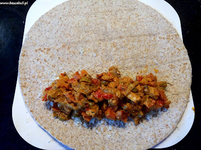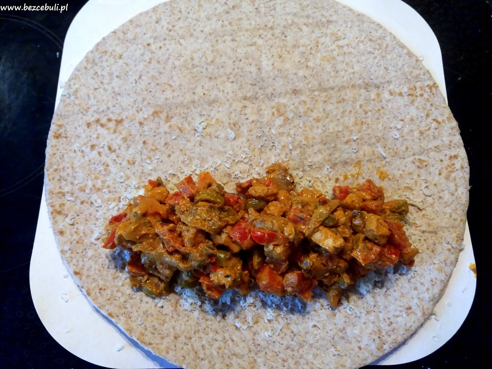 Pamiętajcie, że farsz powinien być dość mocno doprawiony, ponieważ zarówno placki tortilli, jak i dodatkowa śmietana zniwelują jego ostry smak.