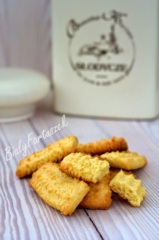 Kruche ciasteczka, bardzo szybkie i proste w wykonaniu. Ja robiłam je w maszynce do ciastek, a jeśli takiej nie macie to z powodzeniem ciasto można rozwałkować i wykrywać foremkami. Są na prawdę przepyszne :)