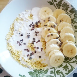 4. Owsianka na mleku kokosowym banan i ziarna kakaowca