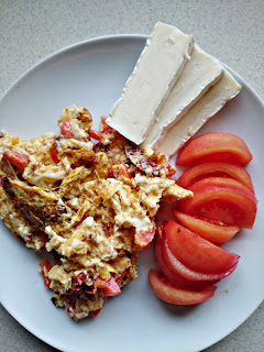 1. Jajecznica z suszonymi pomidorami + pleśniaczek i pomidory