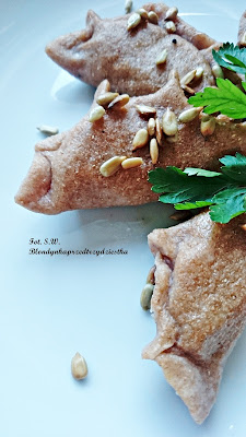 Dziś mam dla was pierogi z mąki orkiszowej z farszem z cieciorki, smażonej cebulki oraz fety.