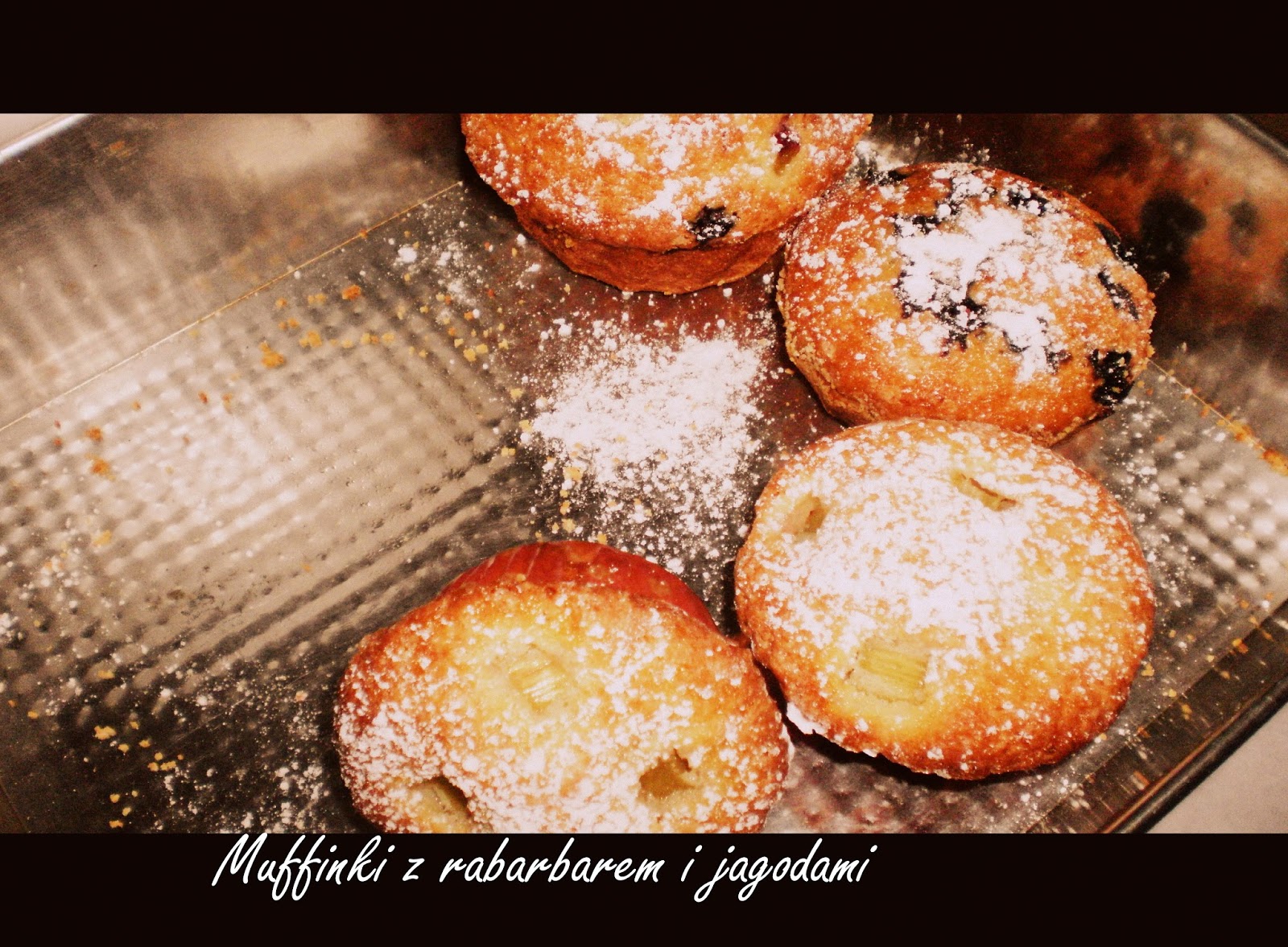 Muffinki z rabarbarem i jagodami na jogurcie greckim