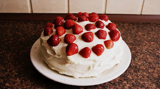 Ponarzekałam trochę, trzymajcie za mnie dalej kciuki a tymczasem przedstawiam Wam mój tort. Wczoraj mój tata miał urodziny, dosyć okrągłe, więc i tort musiał być okrągły ;) A tak na serio. Chyba najlepszy tort jaki zrobiłam. Bardzo nasączony, lekko słodki i z truskawkami <3 Wygląda jak zawsze przeciętnie (muszę iść na kurs dekorowania potraw i ciast!), ale naprawdę jest przepyszny! Prosty w przygotowaniu, przepis na biszkopt idealny, który zawsze wychodzi... Bardzo Wam polecam! Na lato w sam raz do upieczenia :) Prosto z lodówki świetnie ochładza i zaspokaja głód deserowy :)