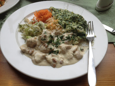 Zacznę od pochwał. Surówki były smaczne, a kluski w połączeniu z nimi nazwała bym nawet niezłymi. I tu pochwały się kończą... Bo sos kurkowy był straszny. Nie chcę być niemiła. Wiem, że komuś mogło to smakować, ale dla mnie kurczak był twardy i miał dziwny smak. Kurki chyba były mrożone (pewności nie mam), a przecież mamy na nie sezon... Więc w całości sos z pozoru prosty stał się moim koszmarem i choć mama z grzeczności kazała mi zawsze wszystko zjadać, tak tym razem nie dałam rady, byłam niegrzeczna i zostawiła prawie cały.