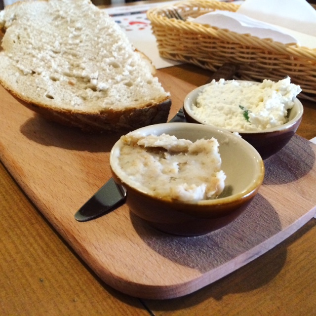 Miłe było to, że dostaliśmy w ramach czekadełka chleb, smalec i twarożek, a jak mieliśmy ochotę mogliśmy wyłowić sobie z glinianego garnka ogórka (oczywiście łowiliśmy). Drugą miłą rzeczą było to, że dostaliśmy nasze dania dosłownie w mgnieniu oka. Dla mnie to było podejrzane, ale... pierogi okazały się wybitnie dobre. Soczysty farsz ze świeżego mięsa, cienkie delikatne ciasto, wszystko dobrze doprawione. Solidna porcja w dobrej cenie.