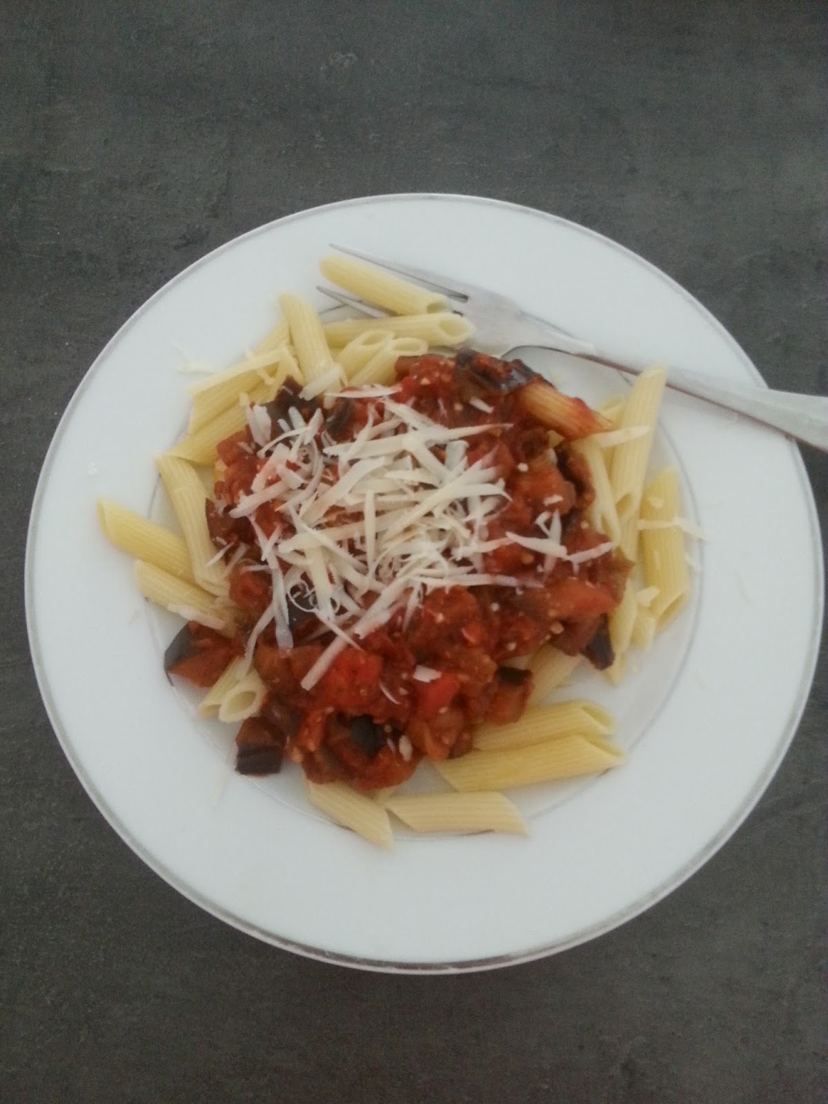 Jeśli tak, to co powiecie na makaron z bakłażanem i pomidorami?