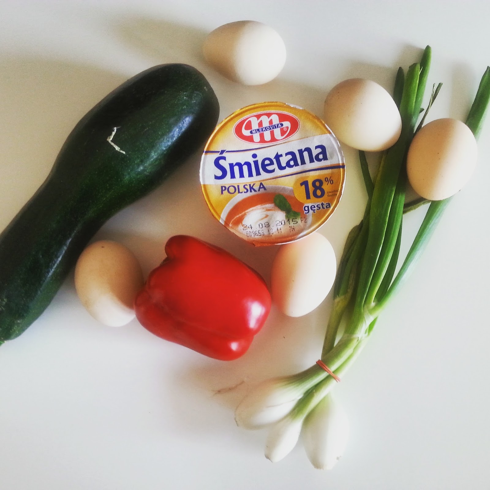 Ja swoją frittatę zrobiłam z papryką, cukinię, młodą cebulką i szczypiorkiem.