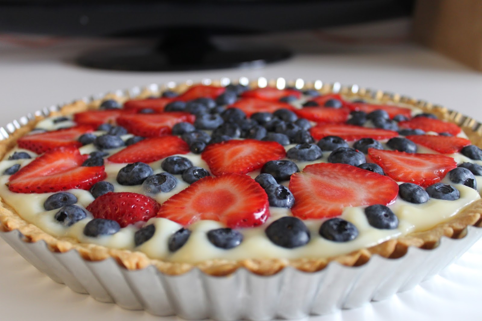 Żeby nie było, że jej nie używam i leży sobie w szafie, mam dla Was przepis na tarte z budyniem i owocami prosto z nowej foremki.