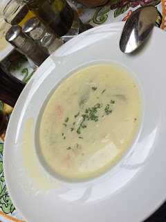 Zupa była naprawdę smaczna. Taka zabielana śmietaną, jarzynowa. Był kalafior, słodki groszek, fasolka szparagowa, marchew. Ogólnie na bogato i po domowemu. Zupa była warta uwagi, więc dałabym jej dobrą 4.