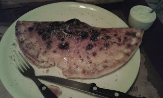Raz, że był z wierzchu przypalony, a w środku lekko niedopieczony, dwa był polany, chyba oliwą z ogromną ilością czosnku, trzy farsz (ser, szynka, pieczarki) nie należał do wybitnych.