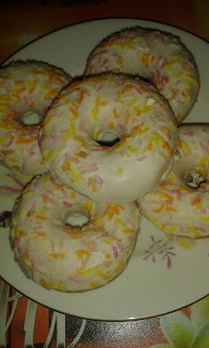 Przestudzone donaty smarujemy polewą i posypujemy posypką..