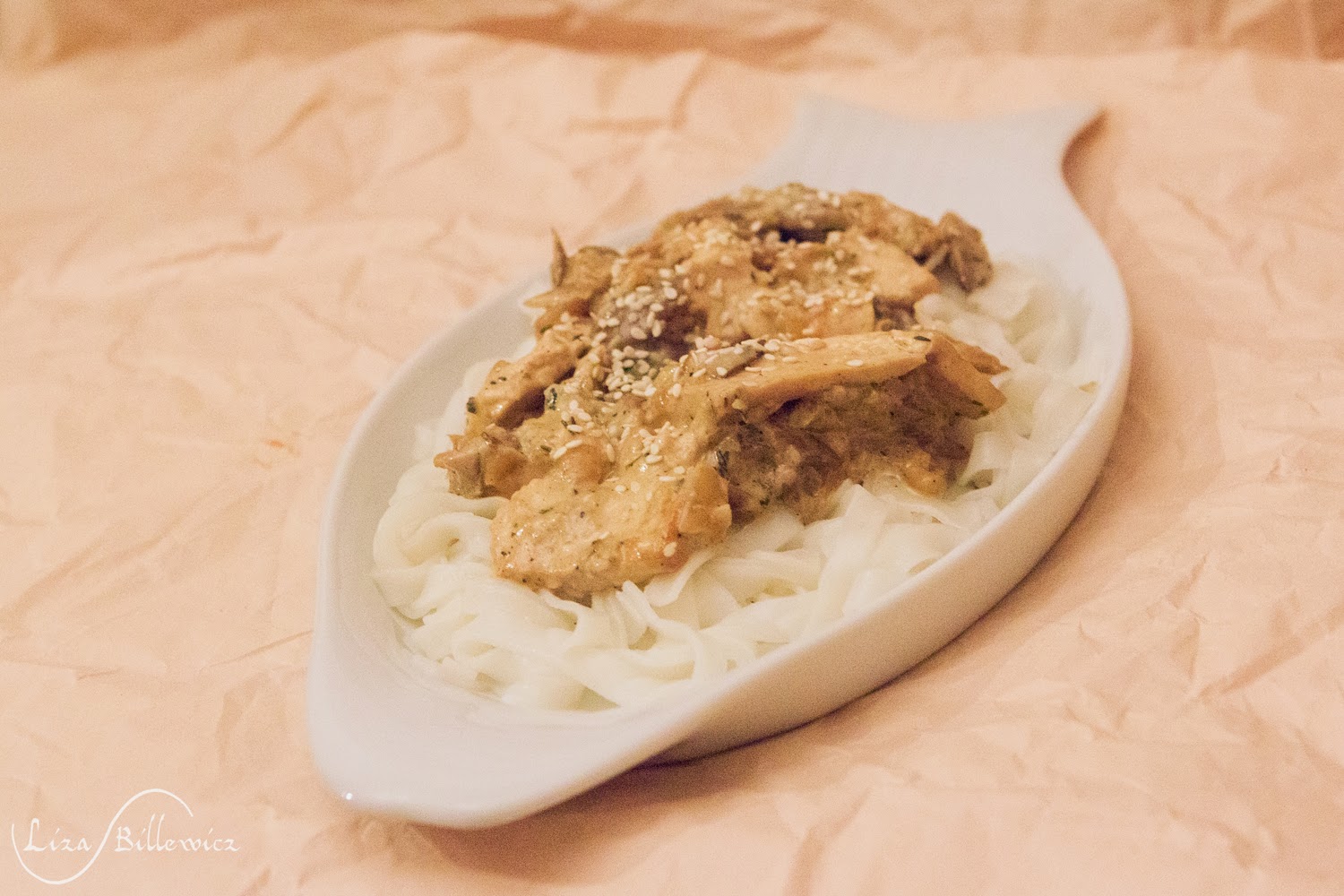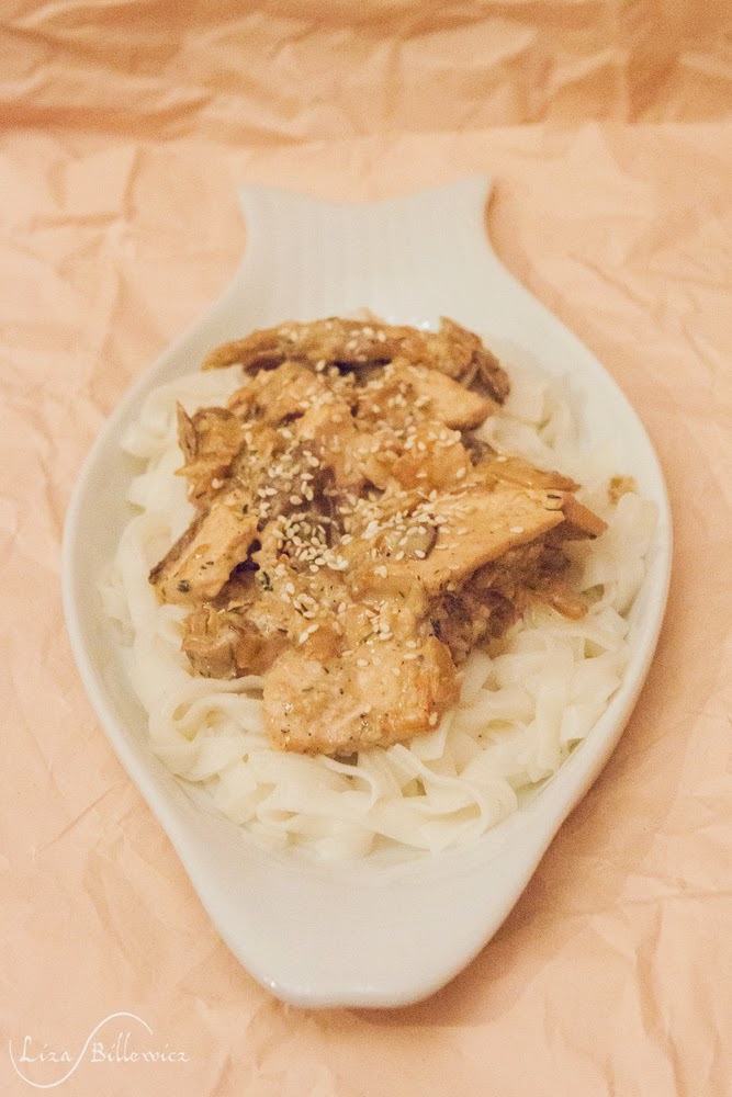 Tofu z boczniakami i makaronem sojowym