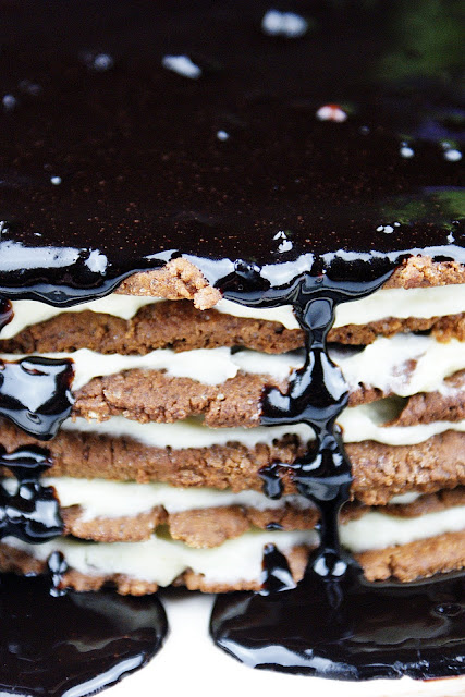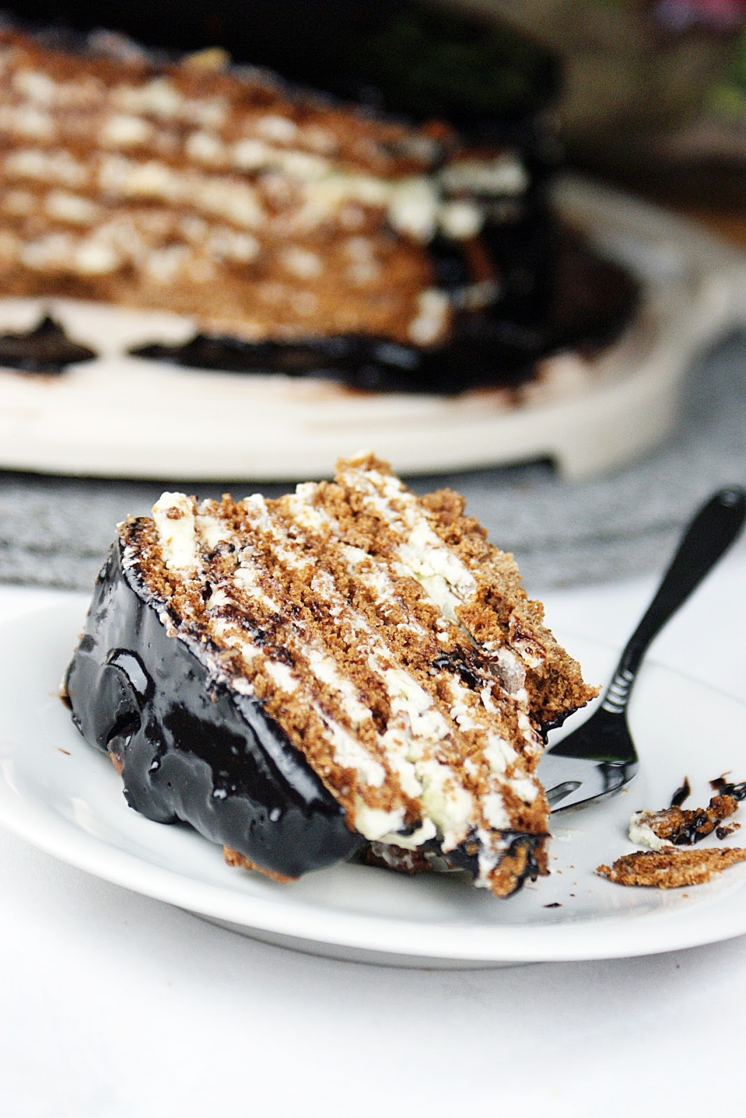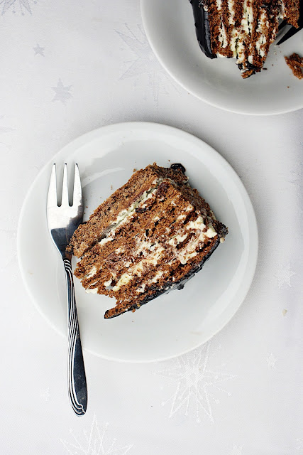 Jeszcze ciepłą polewą polewamy górę ciasta.