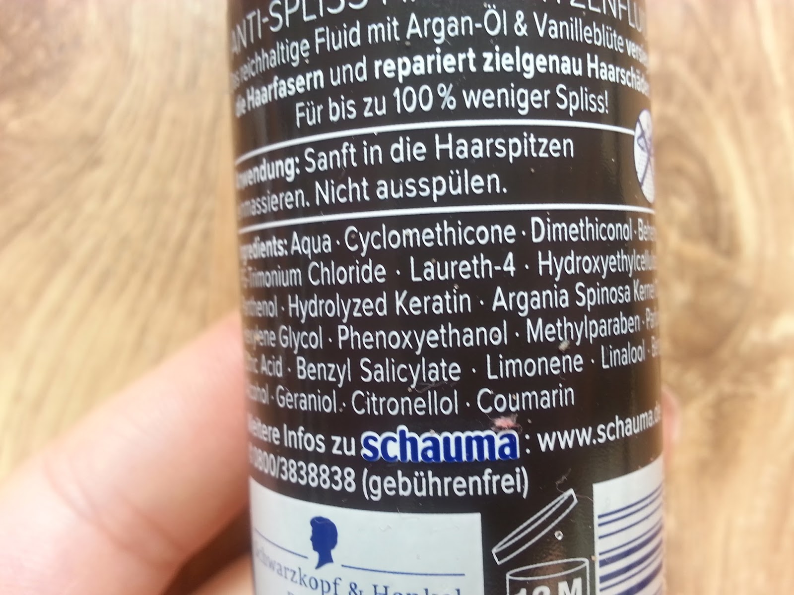 Z tego, co mi wiadomo, produkt dostępny w Polsce. Nigdy nie lubiłam produktów Schaumy, do tej odżywki przyciągnęła mnie promocyjna cena 1€. Na samym początku składu: