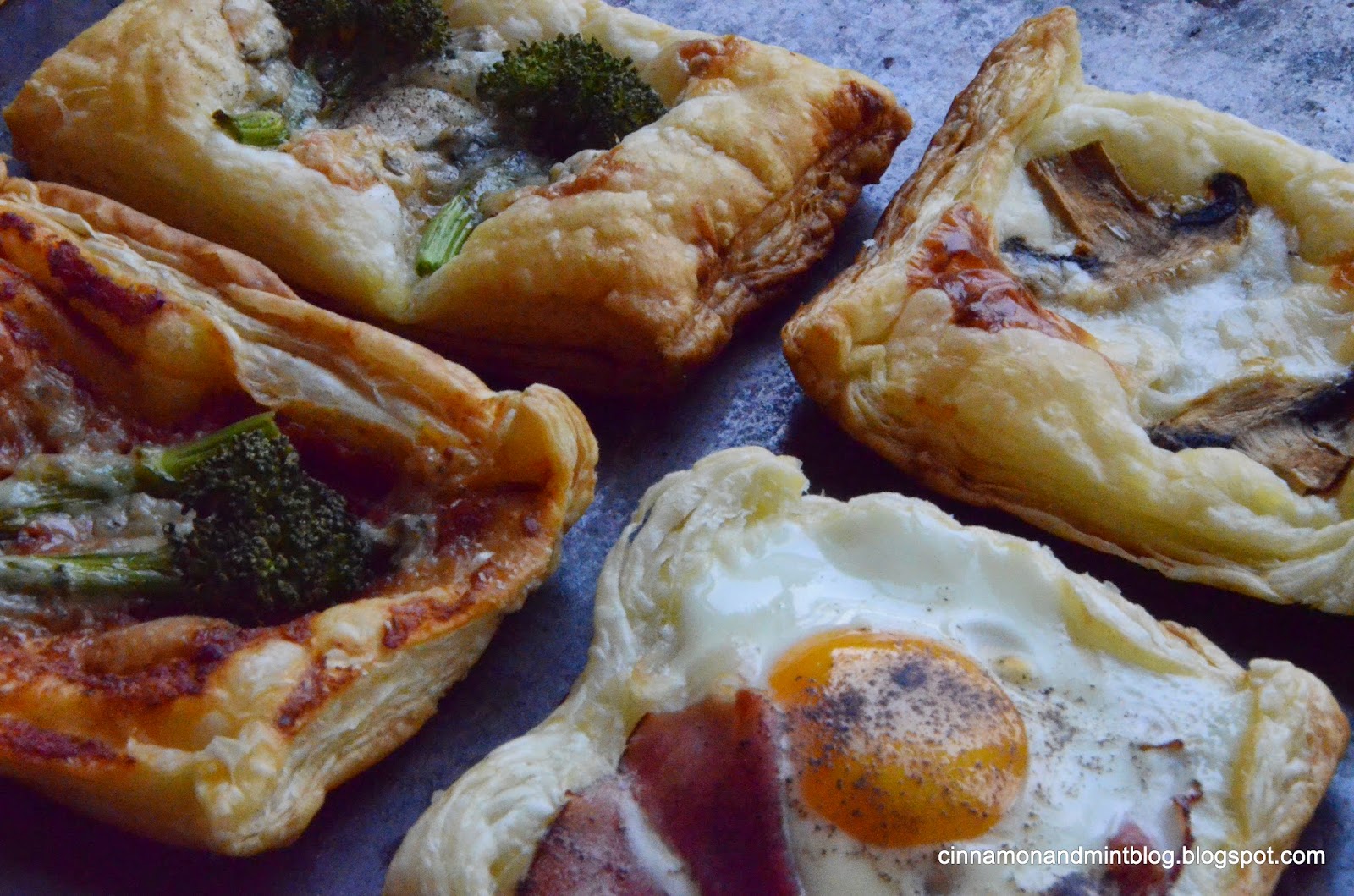Do swojej pizzy użyłam min.: ciasta francuskiego, czerwonego i zielonego pesto, pomidorów, szynki, jajka, pieczarek, sera lazur i sera koziego.
