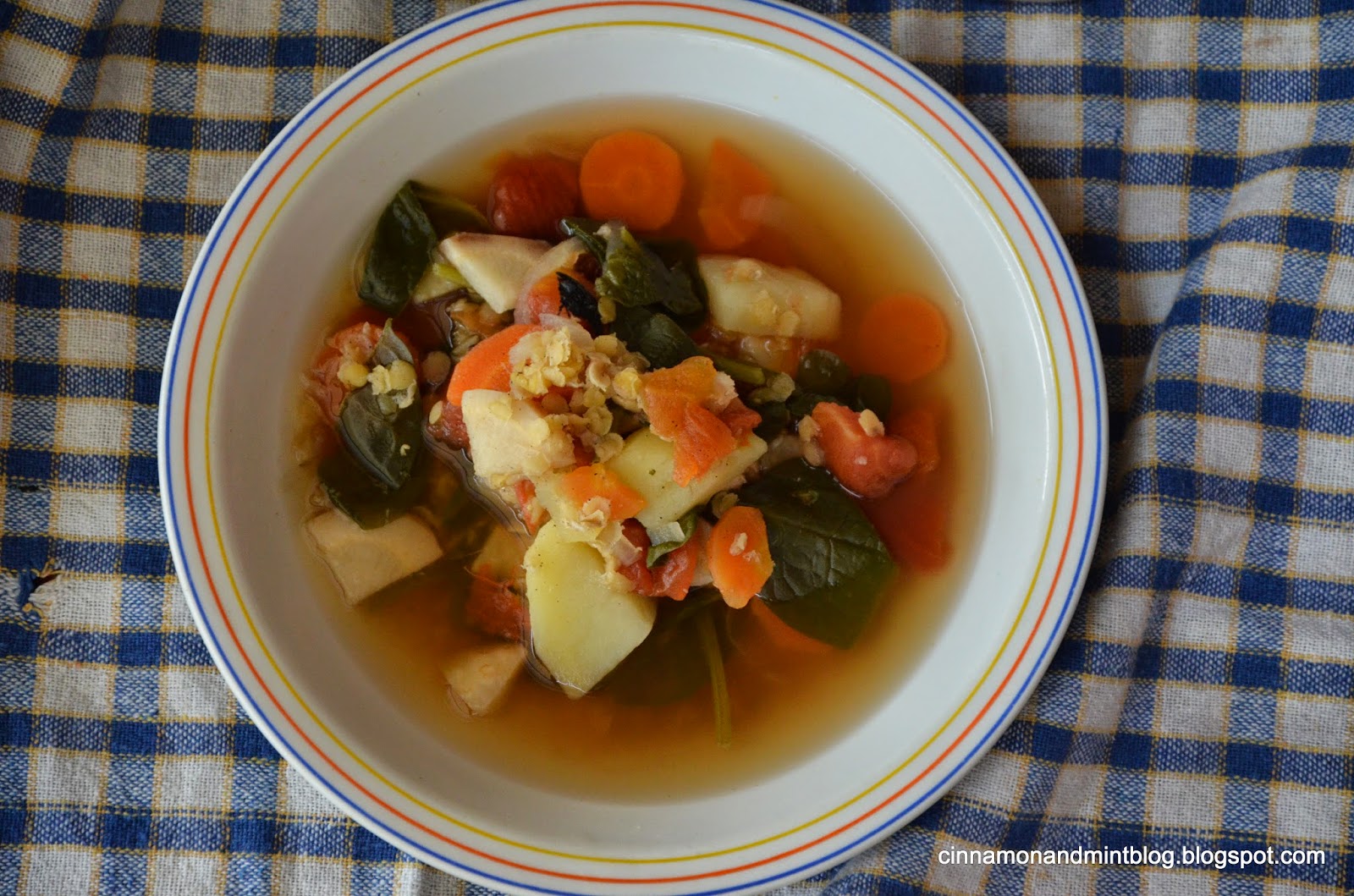 Bardzo lubię takie zupy, które moja mama uroczo nazywa "śmieciówki" :) Wyglądają jakby wrzuciło się do nich wszystko, co się miało akurat pod ręką. Ale pierwsze wrażenie bywa zwodnicze. Co nie zmienia faktu, że największą trudnością jest trafienie w proporcje, bo gotowanie zupy z dokładnego przepisu jest tak samo bez sensu (według mnie) jak gotowanie ziemniaków ze stoperem (ps. znam ludzi, a właściwie jedną osobę, która tak robi).