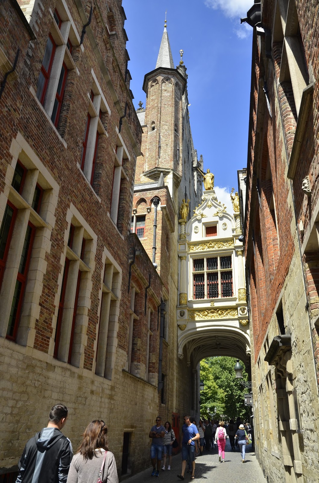 W Brugii magiczne jest to, że skręciwszy w kolejną uliczkę, przeszedłszy przez bramę można znaleźć się w zupełnie nowym, niezwykłym miejscu. Dość ciasna brama między dwoma ceglanymi budynkami prowadzi na jeden z dwóch głównych placów miasta. Tylko jej złocenia świadczą, że kryje się za nią coś zdobnego - Plac Burg.