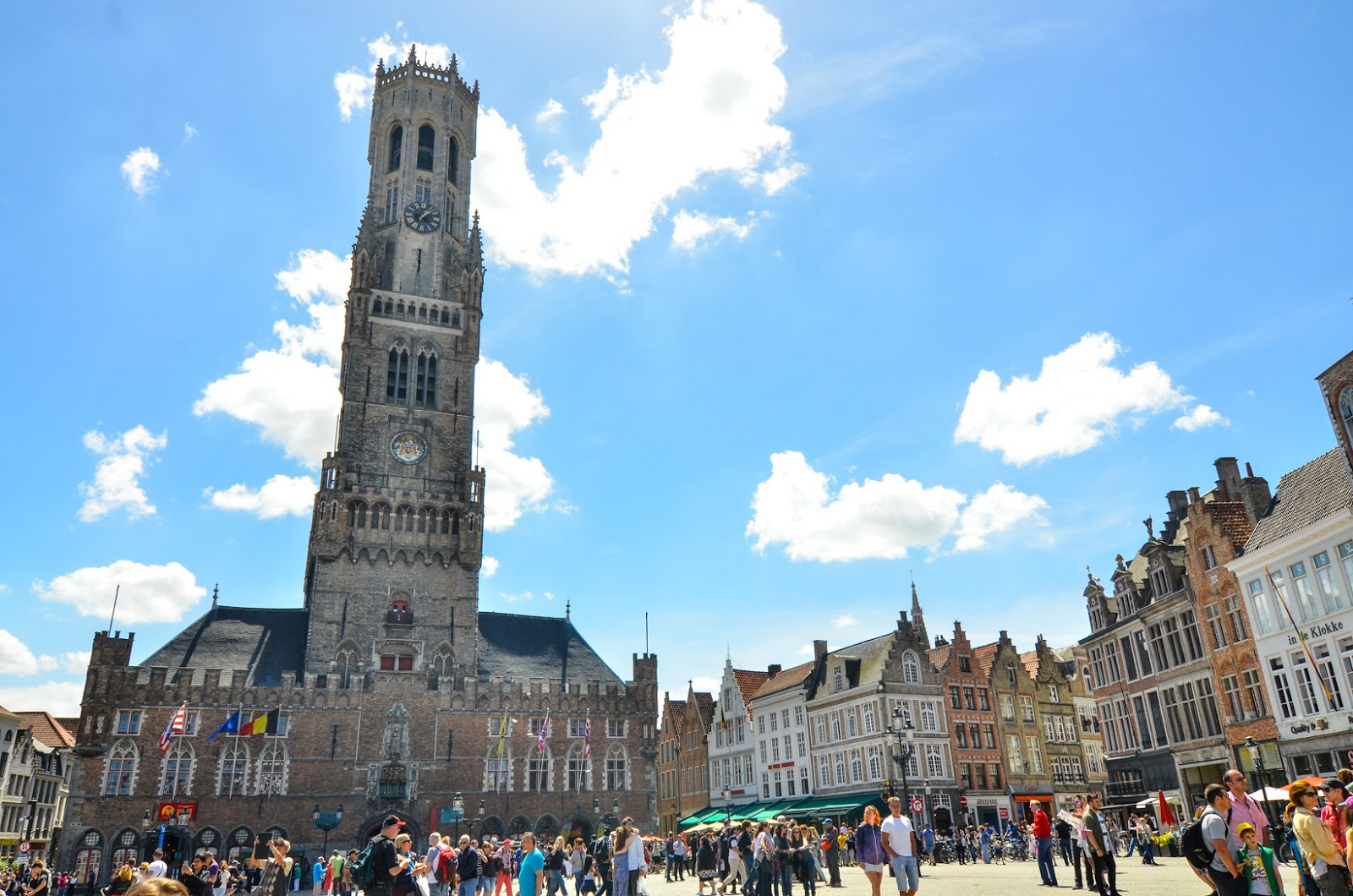 Dwa kroki dalej jest drugi główny plac miasta - Markt, na którym dominuje wieża Belfry. Belfry to ogólna nazwa dla wież charakterystycznych dla Belgii i regionów północno-wschodniej Francji. Wypatrywano z nich niebezpieczeństw jak pożary czy napady, o czym donosił dźwięk dzwonu zawieszonego na szczycie. Niekiedy umieszczano tu instrument o nazwie carrilon, czyli cały zespół dzwonów wieżowych, na których można wybijać melodie za pomocą specjalnej klawiatury połączonej z sercami dzwonów.