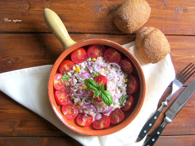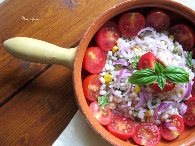 Klasyczna włoska , letnia sałatka. W przygotowaniu najwięcej czasu zajmie oczekiwanie aż pęczak się ugotuje. Reszta to już kwestia kilku minut i sałatka gotowa do konsumpcji.