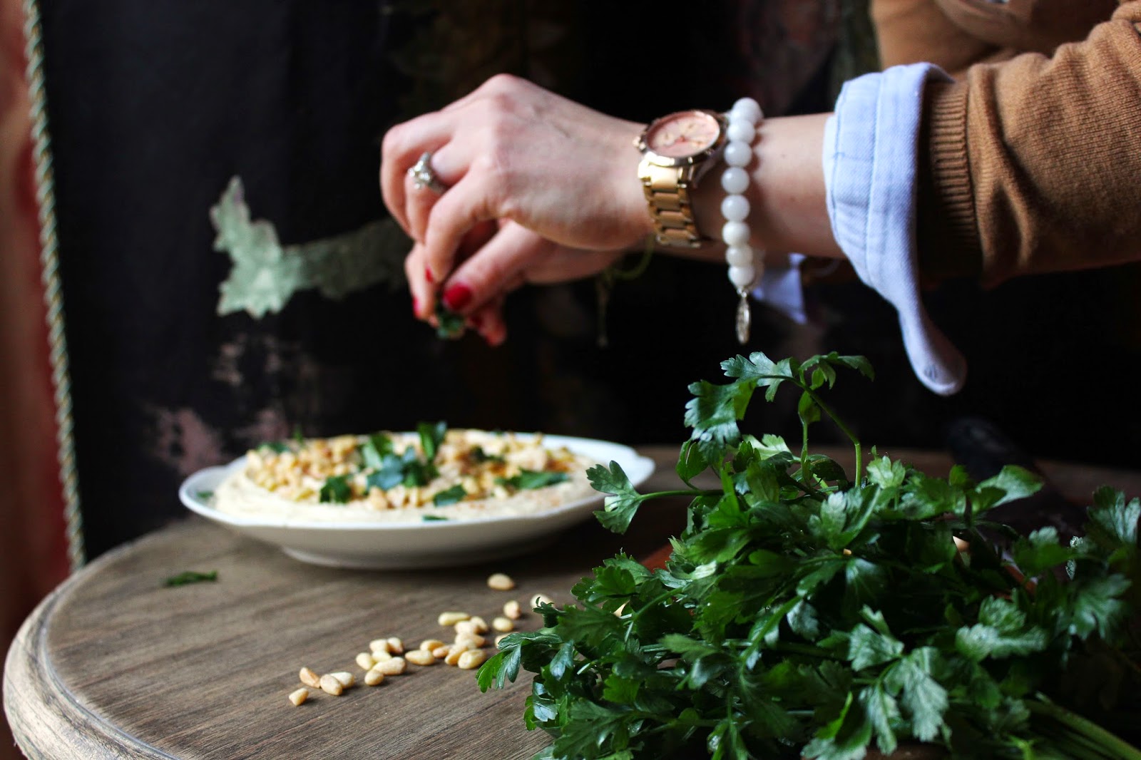 Zielony i bardzo aromatyczny hummus z kolendrą i pietruszką