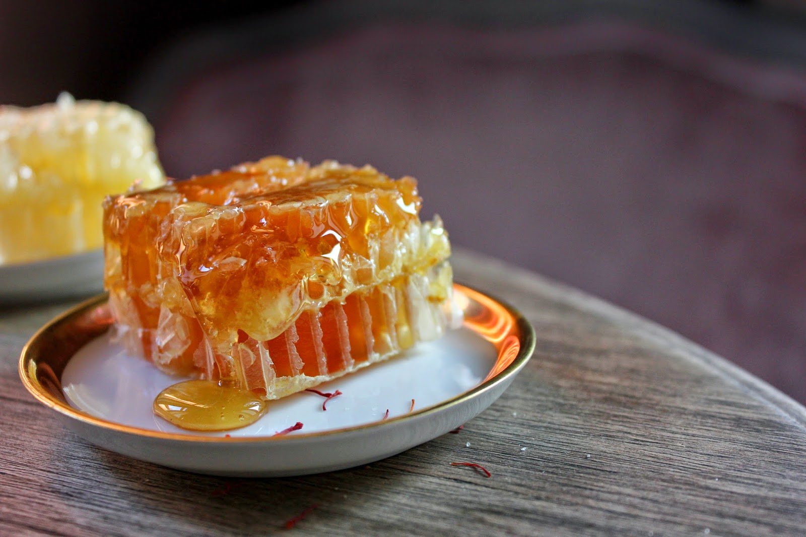 Smak z tysiąca i jednej nocy /szafranowa ricotta/ miód/ pączki suszonej róży damasceńskiej/prażone orzechy laskowe