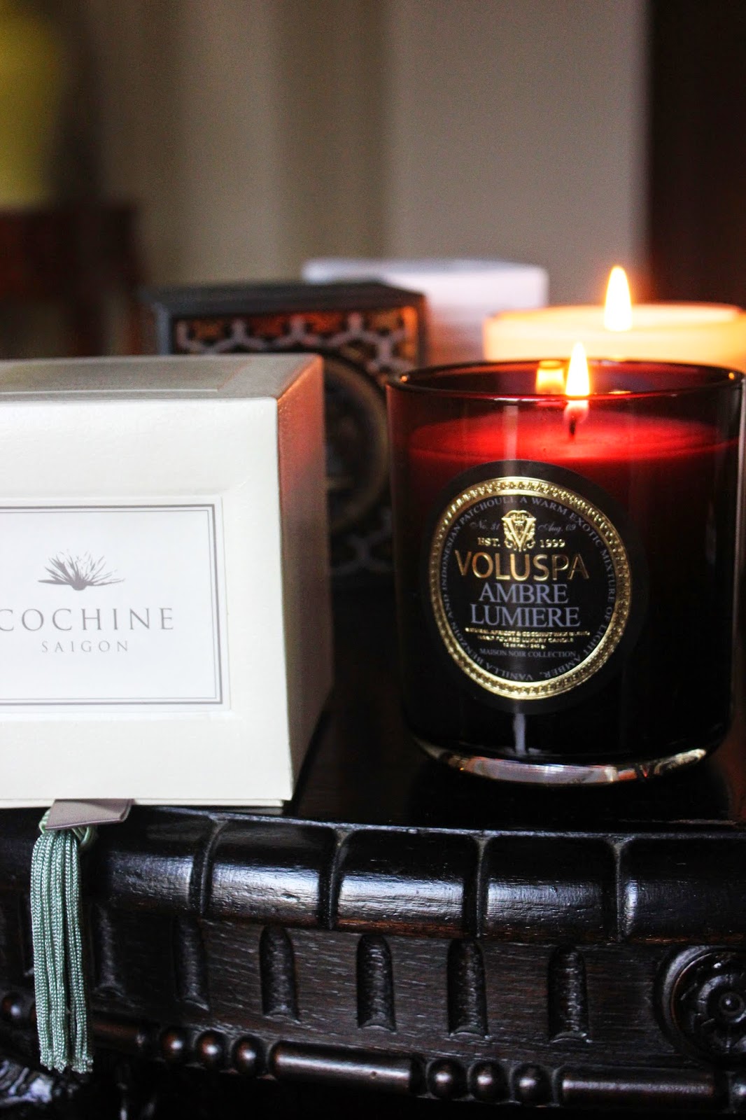 U nas wieczorami pachnie migdałami, wanilią oraz cięższymi, esencjonalnymi zapachami orientu. Naszymi faworytami wśród świec są Cochine Saigon, Peyote Poem oraz Voluspa.