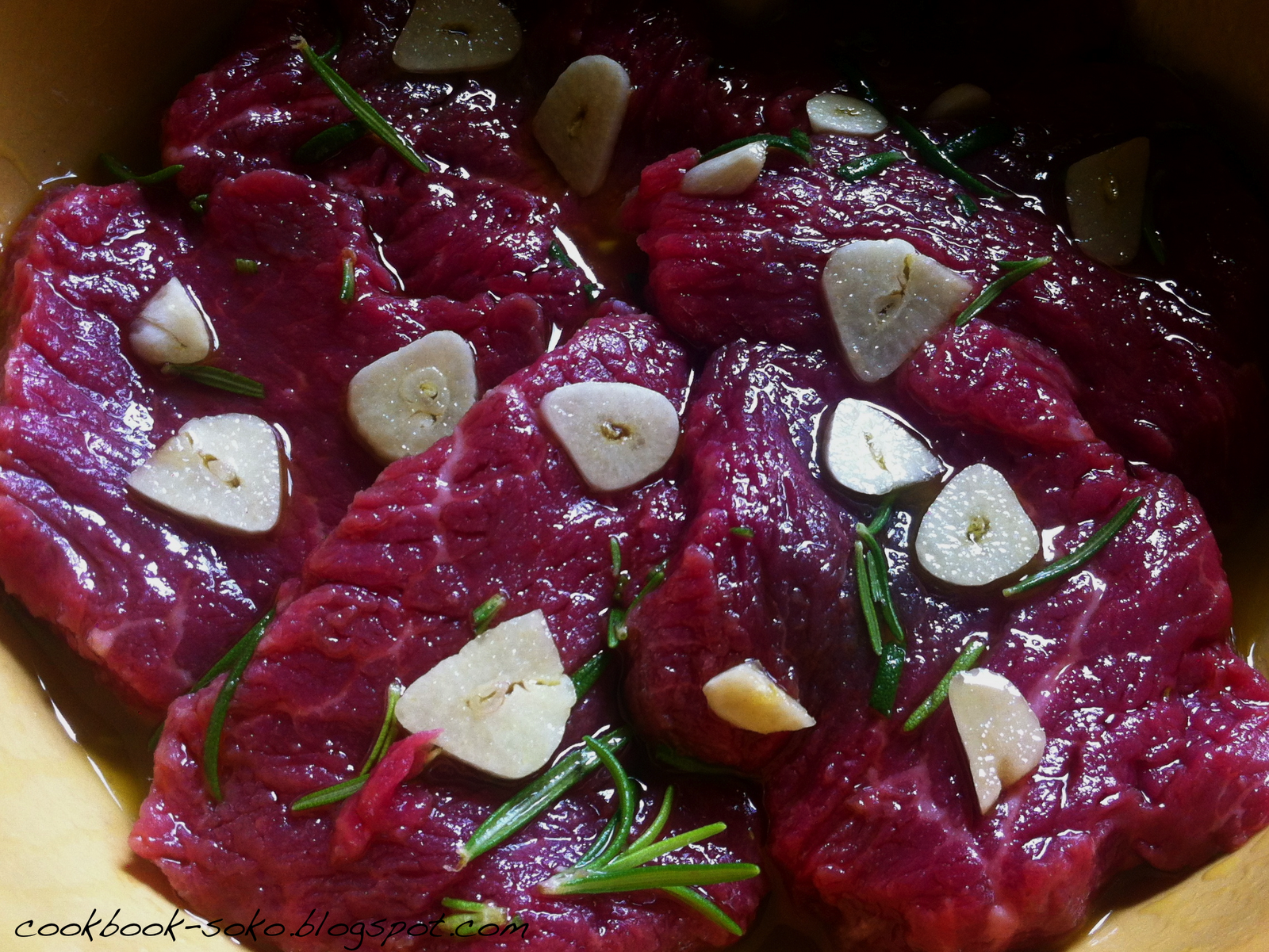 1. mięso kroimy w plastry grubości kciuka i delikatnie rozbijamy