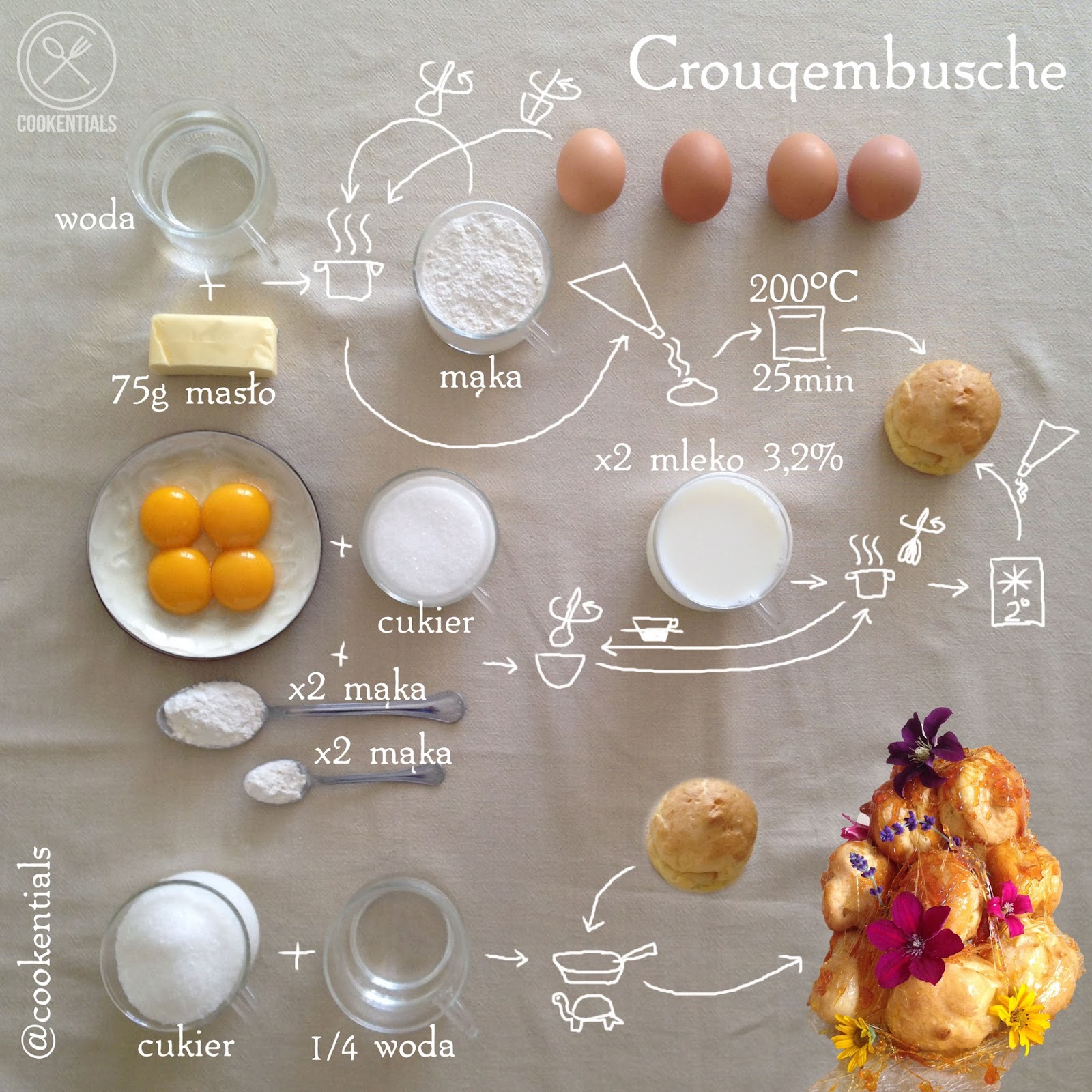 Na blogu pojawił się już kiedyś croquembouche, chociaż zdecydowanie mniej okazały. Może dlatego, że tym razem miałam w domu jedynie 30 stopni, a nie 40 i cały świat nie rozpływał się z gorąca? Zdecydowałam się na krem budyniowy, bo te maślane nie...