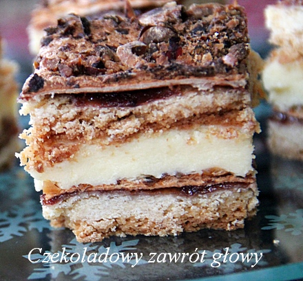 Pierwszy blat ciasta smarujemy równomiernie kremem. Na wierzch kładziemy drugi blat ciasta. Lekko dociskamy. Ciasto najlepiej smakuje na drugi dzień.