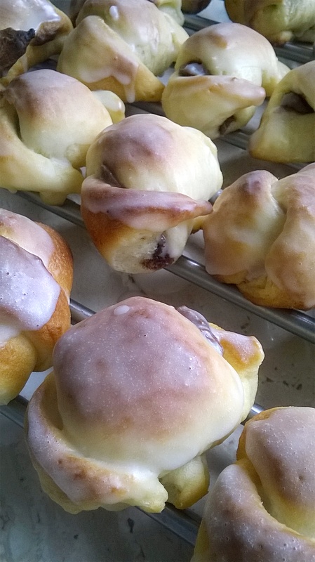 Formę wyłożyć papierem do pieczenia, ułożyć rogaliki i odstawić na trochę do napuszenia się. Piec w temperaturze 180 - 200 stopni przez około 15 minut. Udekorować lukrem.