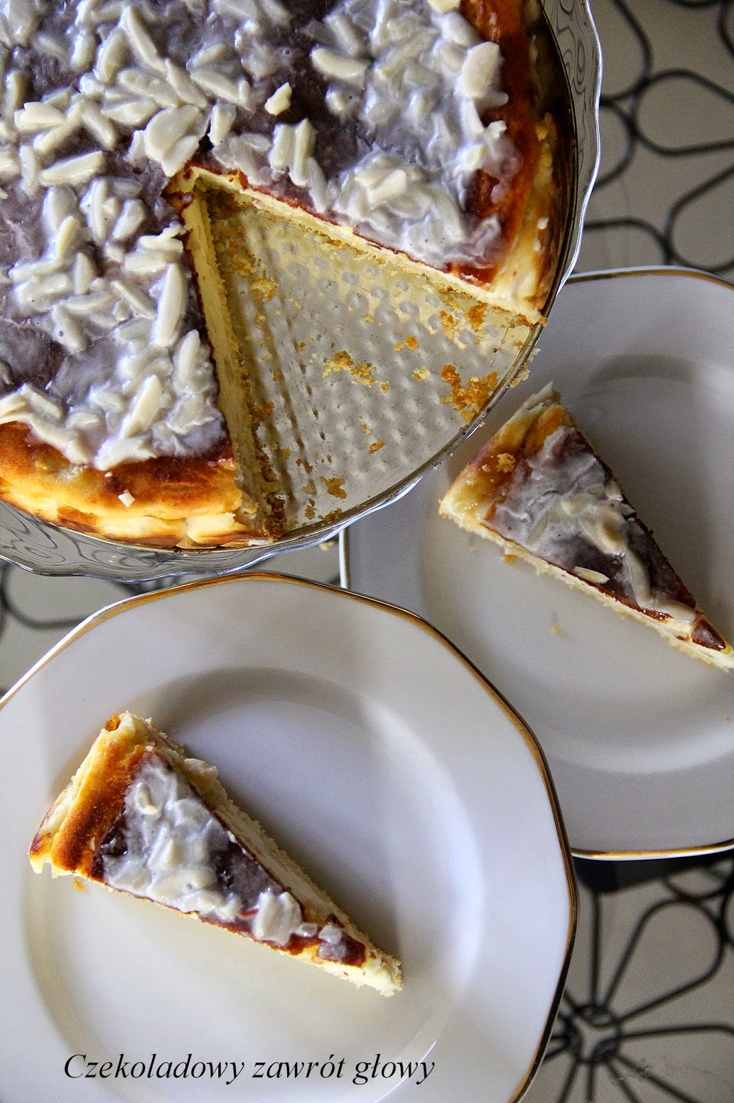 Wierzch oblałam lukrem z kilku łyżek cukru pudru i kilku łyżek śmietany, obsypując pokrojonymi migdałami.;)