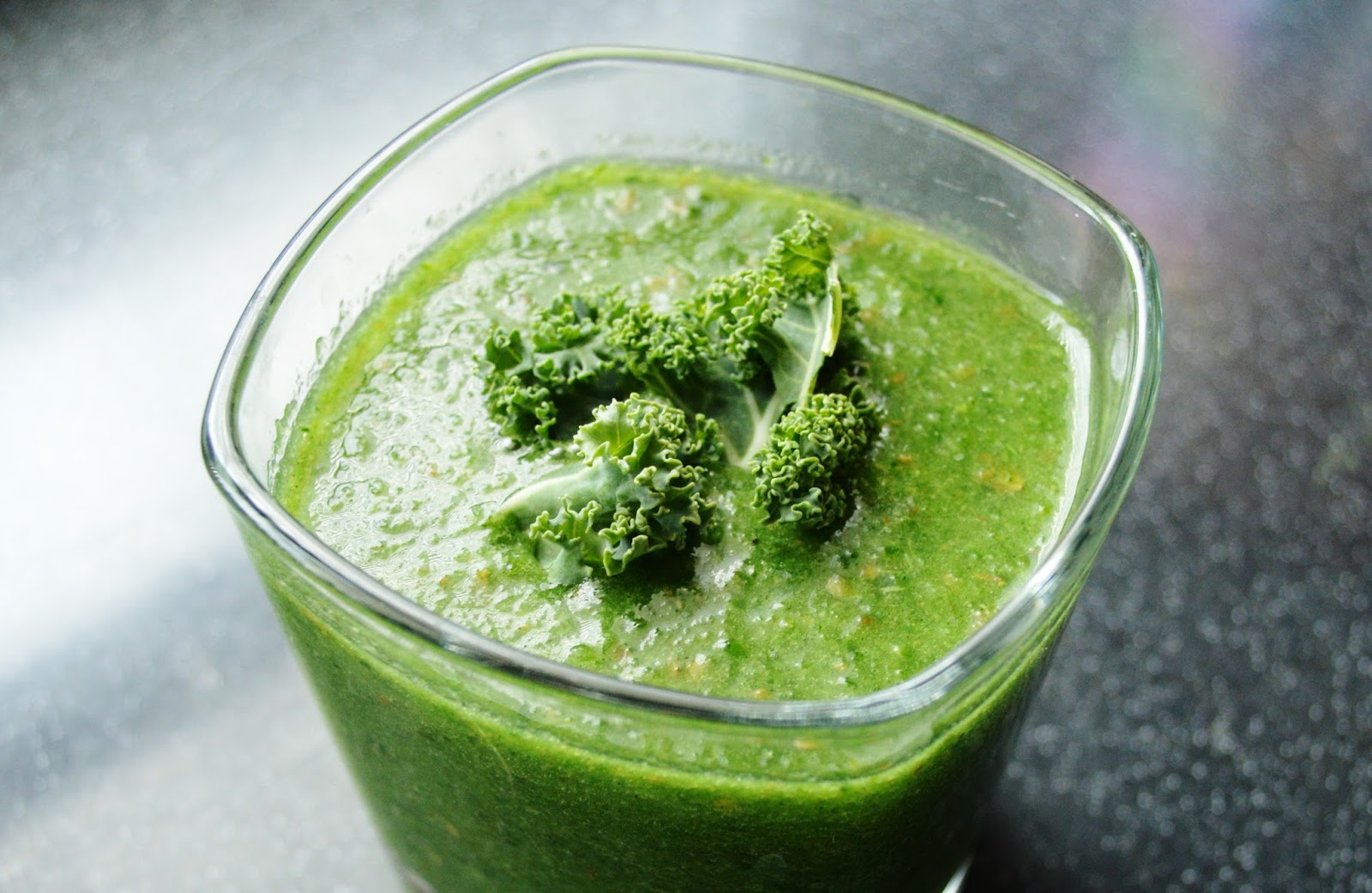 Kolktajl z jarmużu i gruszek z dodatkiem spiruliny