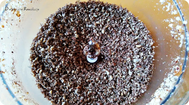1. Orzechy dokładnie mielimy, dodajemy kakao i miód ( ilość zależy od tego jak słodkie chcemy mieć batoniki)